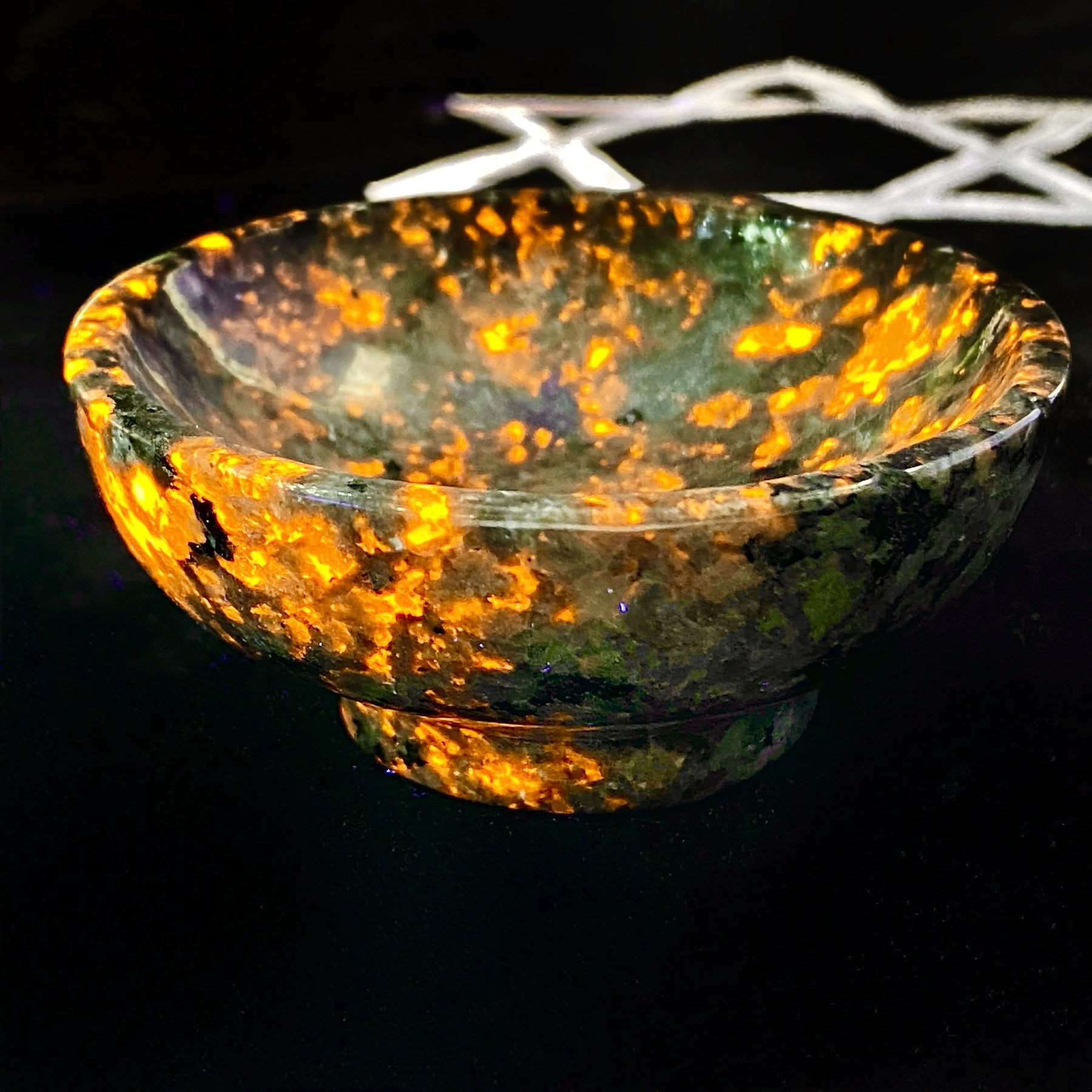 1PC Yooperlite Crystal Bowl -UV Reactive Flame Stone,Ideal for Home Decor&Gifts-Perfect for Christmas,Easter,Valentine's Day